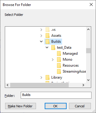 – Browse to your Build folder, for example ../Builds/ within your unity project (next to Assets/ folder)