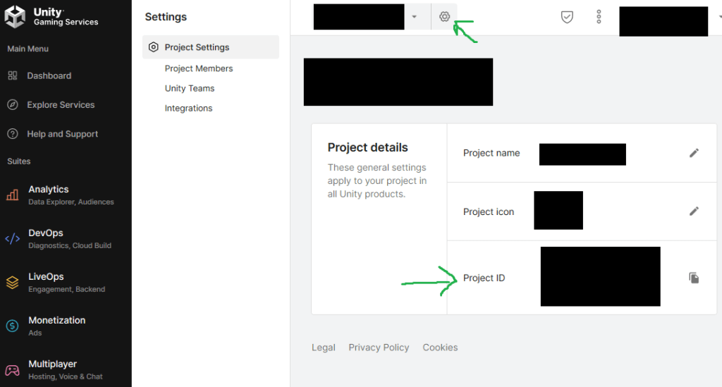 - collect secret keys from https://dashboard.unity3d.com , If you are invited as a collaborator check https://dashboard.unity3d.com/settings/account/guest-projects